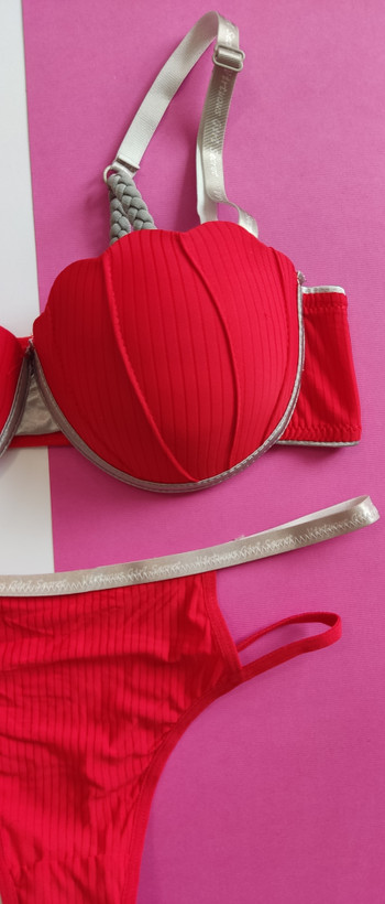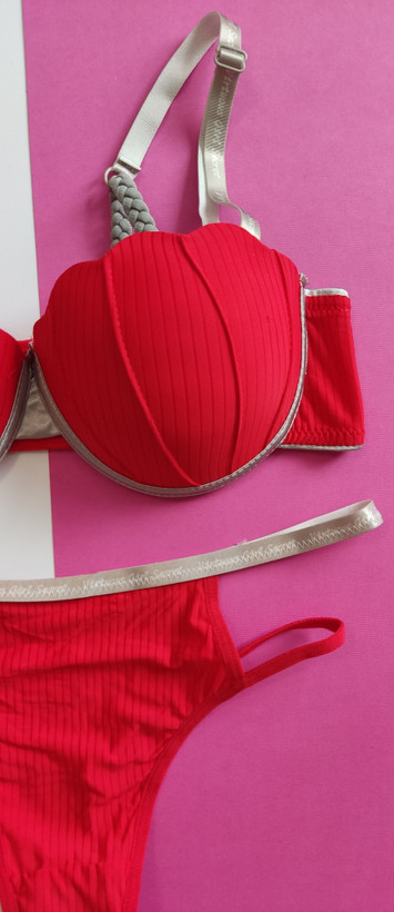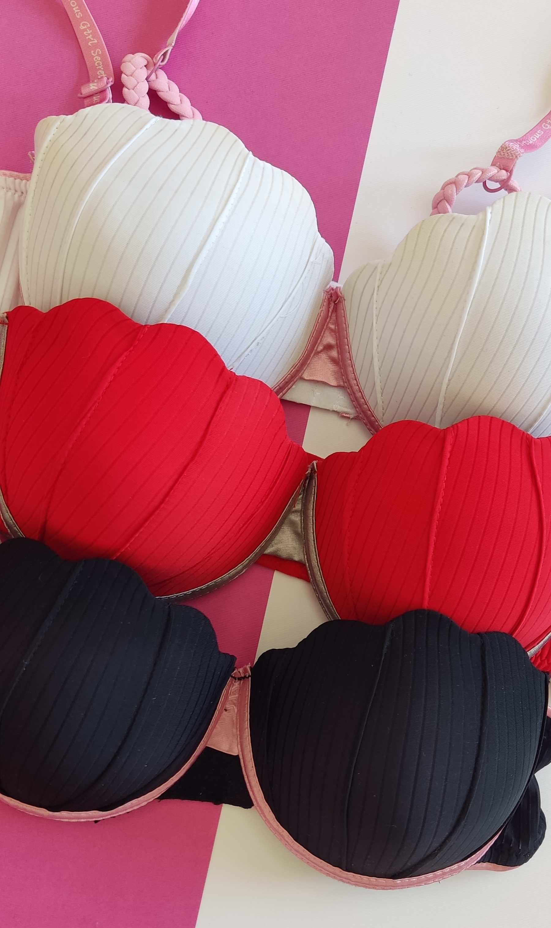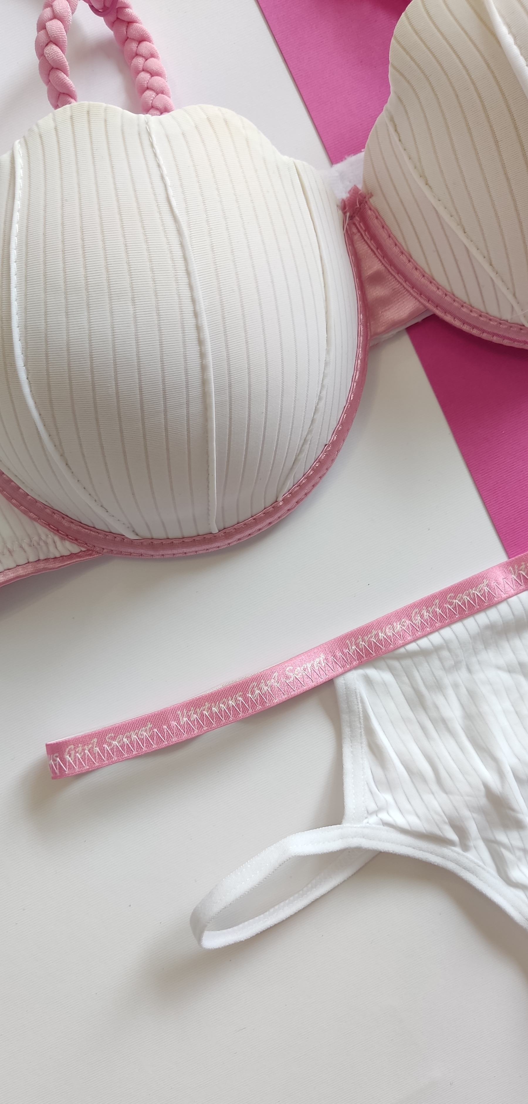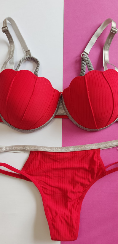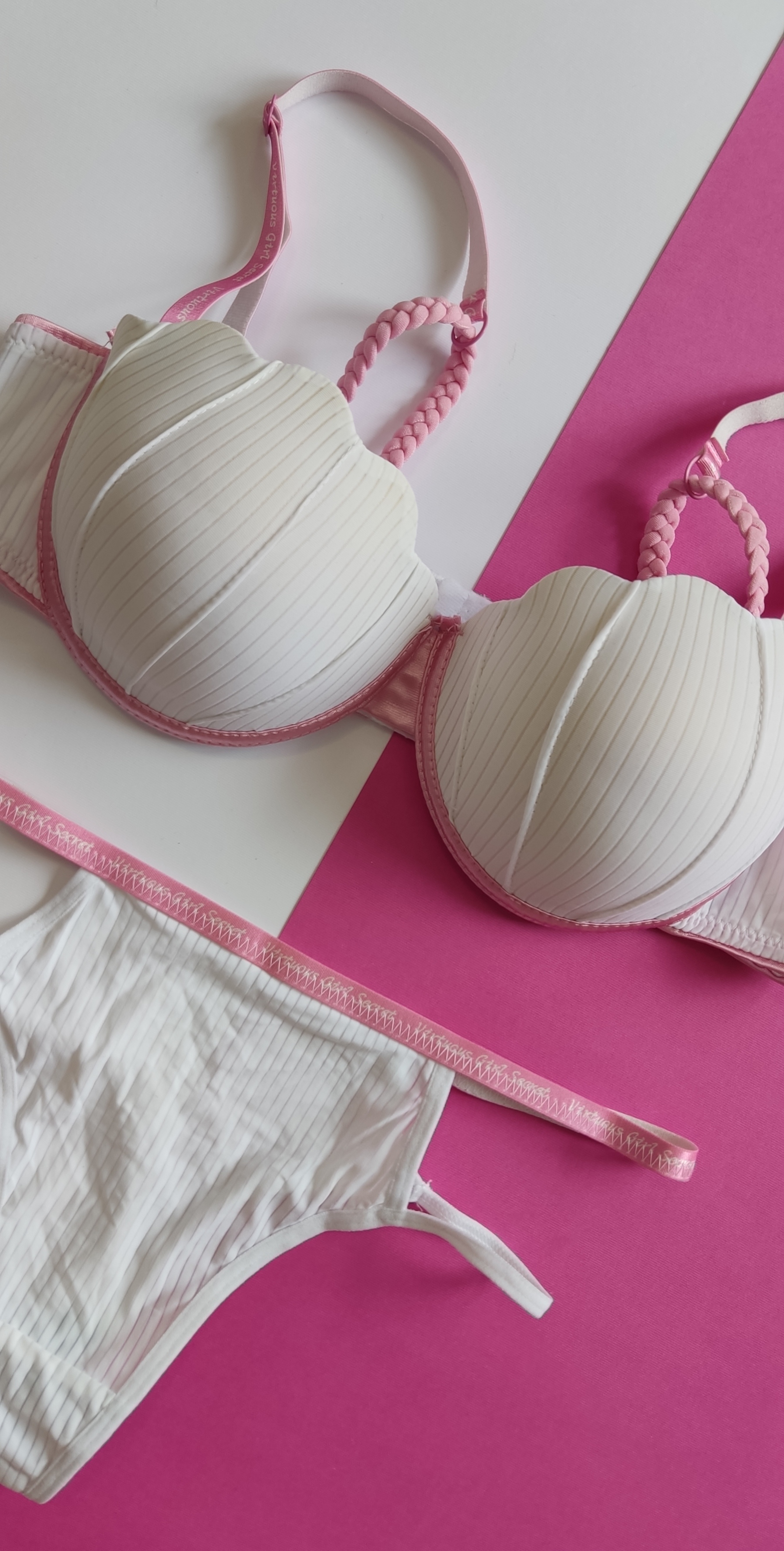 ست شورت و سوتین اسفنجی زنانه مدل صدفی طرح بندبافتی